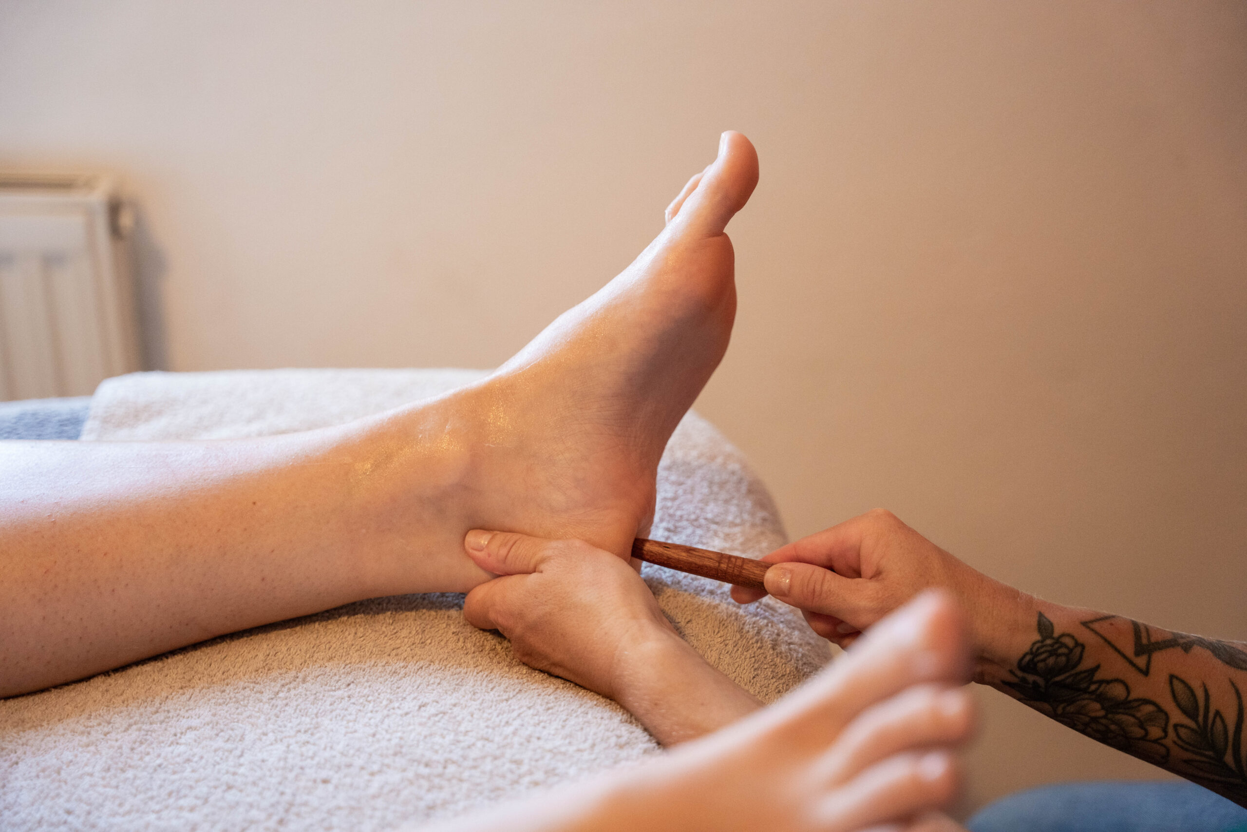 Wohltuende Massage der Füße und Unterschenkel, die die Energiezentren harmonisiert und den ganzen Körper entspannt.